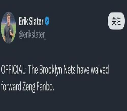 美记Slater:篮网裁掉曾凡博。