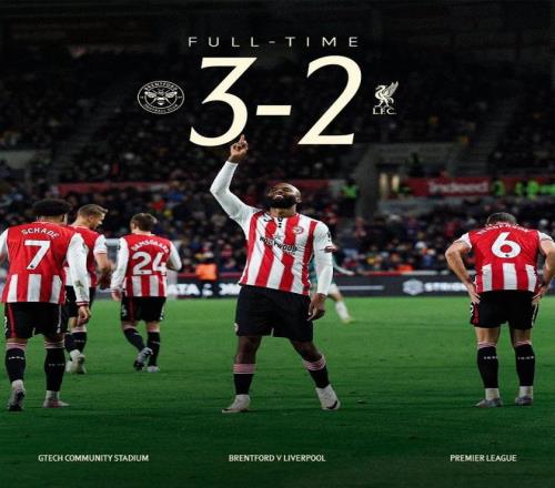 英超第9轮,利物浦2-3客负布伦特福德,遭遇英超4连败。