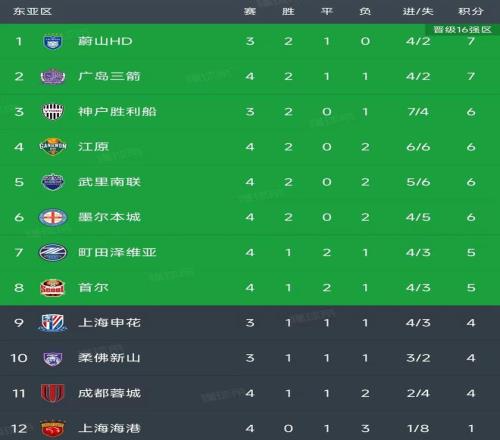 北京时间11月5日,亚冠精英联赛东亚区第4轮结束了4场比赛,我们一起看看最新积分榜变动,主要的信息如下:成都蓉城0-0首尔,上海海港0-2不敌武里南联,广岛三箭1-0江原,町田泽维奇1-2墨尔本城!
