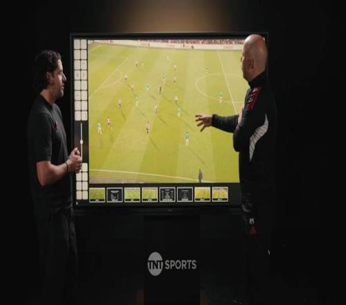 确实。我们来看这个,这是埃基蒂克在对热刺时的进球。我当时就在场边,他个子太高了,我当时真没想到。