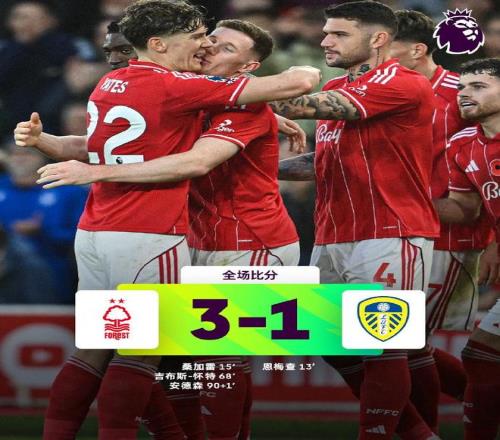 上半场,恩梅查禁区内低射破门,帮助利兹联1-0领先,随后不久,桑加雷补射破门,帮助诺丁汉森林1-1快速扳平。下半场,吉布斯-怀特、安德森各进一球,帮助诺丁汉森林3-1完成逆转。