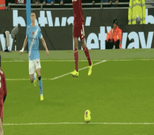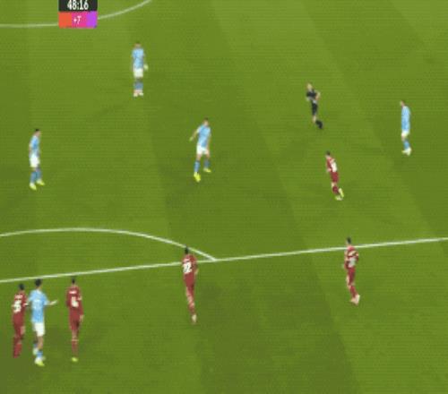 第39分钟,范迪克头球破门,但罗伯逊越位位置干扰门将,比分还是1-0。上半场补时阶段,尼科·冈萨雷斯的射门被范迪克挡了一下变向破门。