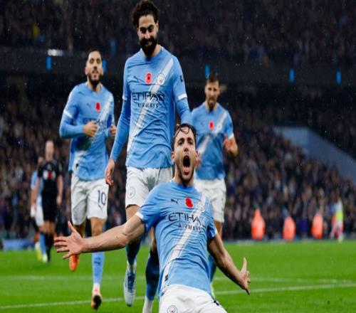 曼城首发:25-多纳鲁马、3-鲁本·迪亚斯、24-格瓦迪奥尔、33-奥赖利、27-努内斯、4-尼科·冈萨雷斯、20-B席、10-谢尔基、11-多库、47-福登、9-哈兰德。
