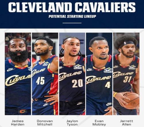 骑士现在的阵容深度非常强大。他们可以围绕四大核心球员哈登、米切尔、埃文·莫布利和贾莱特·阿伦搭配主要轮换球员。另外一个首发球员可能是二年级球员杰隆·泰森。